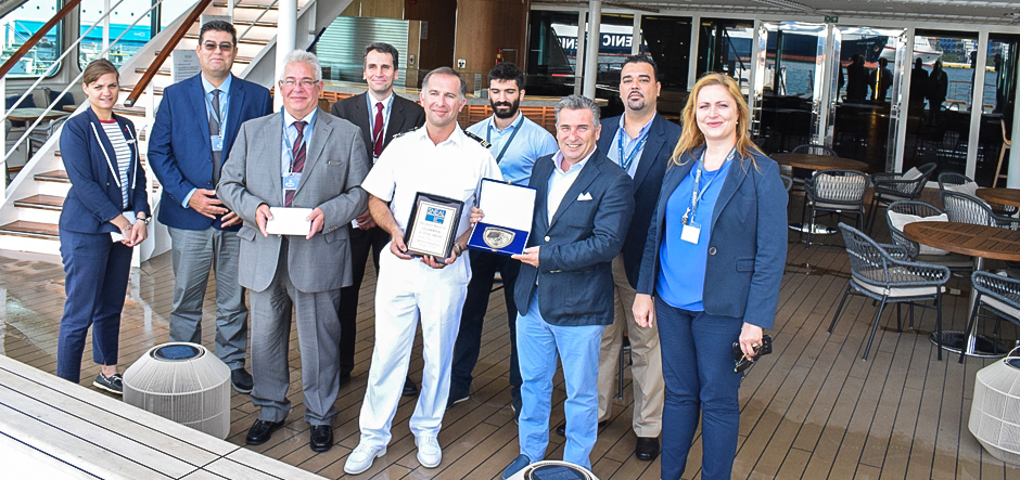 The vessel was welcomed by the port authority’s management team, who also presented her master, David Marionneau, with an honorary plaque to commemorate the inaugural visit and some books for the onboard library.