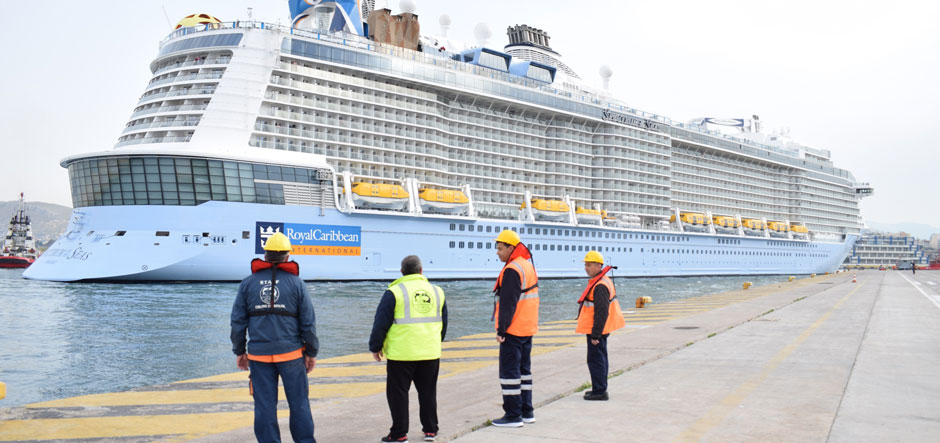 Launched in April 2019, the 4,246-passenger Spectrum of the Seas was welcomed by Piraeus Port Authority’s deputy CEO Weng Lin, who presented a commemorative plaque and books to her captain, Charles Sigmund Teige. Other executives from the port authority and representatives from cruise associations also attended the ceremony.
