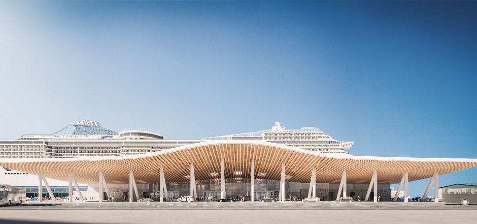 The terminal will have roof-mounted solar power and will have shore power connectivity installed. Construction is currently proceeding according to schedule, with the terminal set to welcome its first ships from the summer.
