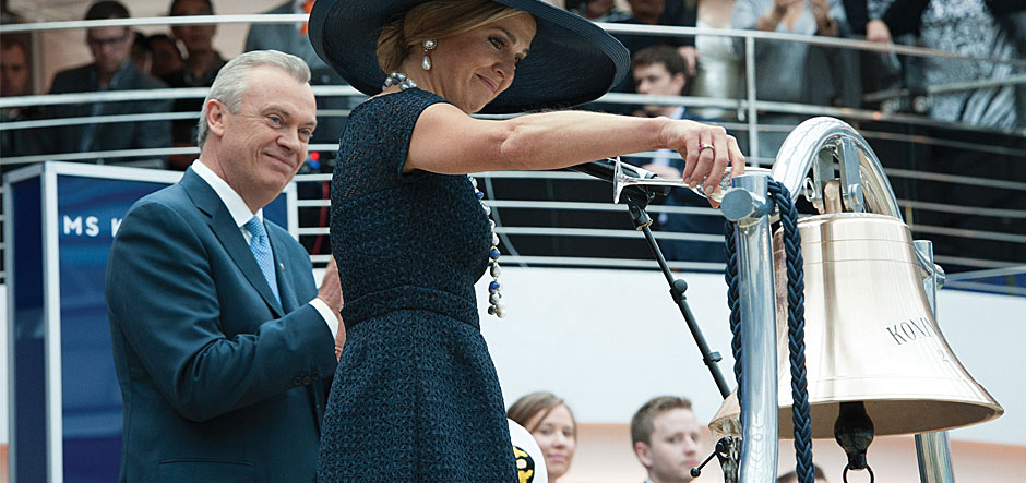Her Majesty Queen Máxima of the Netherlands officially named Holland America Line’s first Pinnacle Class ship, Koningsdam, during a dedication ceremony in Rotterdam, Netherlands on 20 May.
