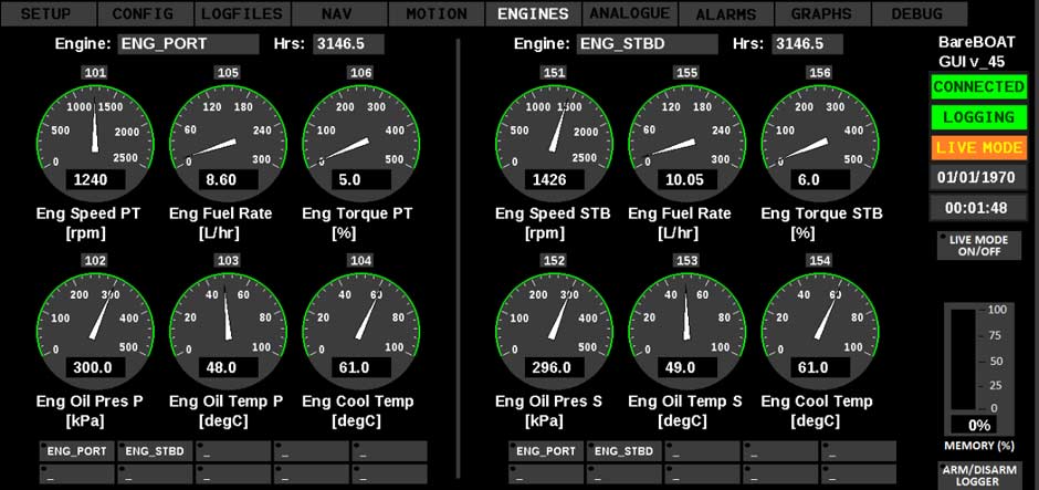 BareFLEET automatically gathers a comprehensive set of engine, navigation, motion and health data, including fuel efficiency, carbon dioxide emissions, vertical heave motion, tower impact and push-on force, plus an indication of motion sickness.