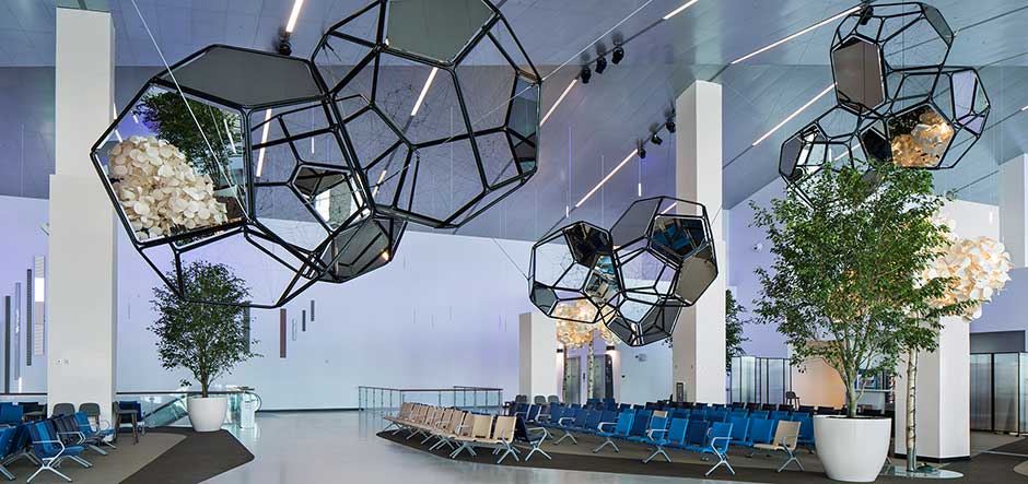 Terminal A was constructed in compliance with Leadership in Energy and Environmental Design standards and is equipped with advanced technologies to enhance the waiting areas and facial recognition technology at Customs and Border Patrol to expedite the disembarkation process.