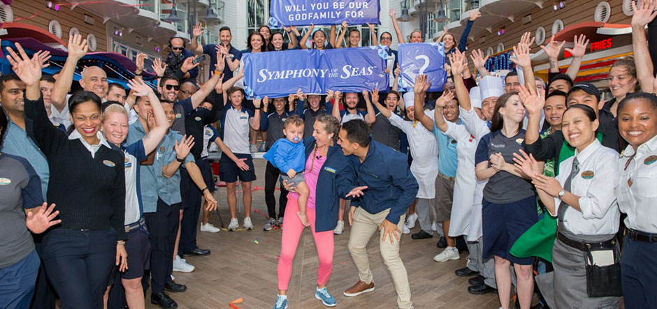 Royal Caribbean International has broken maritime tradition by naming American actors Carlos and Alexa PenaVega and their 17-month-old son Ocean, as godfamily of new ship Symphony of the Seas.
