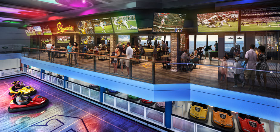 Highlights will include a new generation of the SeaPlex activity space, which will feature a full-sized sports court, bumper cars and a glow-in-the-dark laser tag area, among other activities. Guests will also be able to enjoy RipCord by iFly, a skydiving simulator, alongside the FlowRider surf simulator.