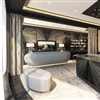 The suite will feature a personal sauna, steam room and treatment area, as well as glass-enclosed solarium and floor-to-ceiling wall of windows along three sides of the ship. The interior décor was designed by Tillberg Design of Sweden and features hand-crafted furnishings, Italian marble and golden chandeliers.