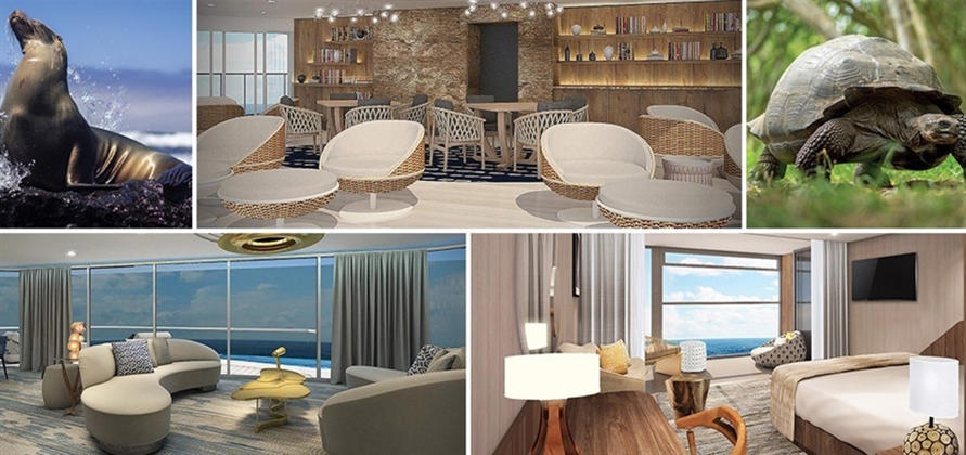 Public areas will include the Sunset Lounge, Seaside Restaurant, Ocean Grill, the glass-fronted Observatory, the Darwin’s Cove and Naturalist Center tourist offices, the Discovery Lounge, the Stargazing Platform and The Vista, an open-air hideaway with 360-degree views, cocoon-style loungers and private cabanas. The ship will also have a marina, where with ridged inflatable boats for excursions.