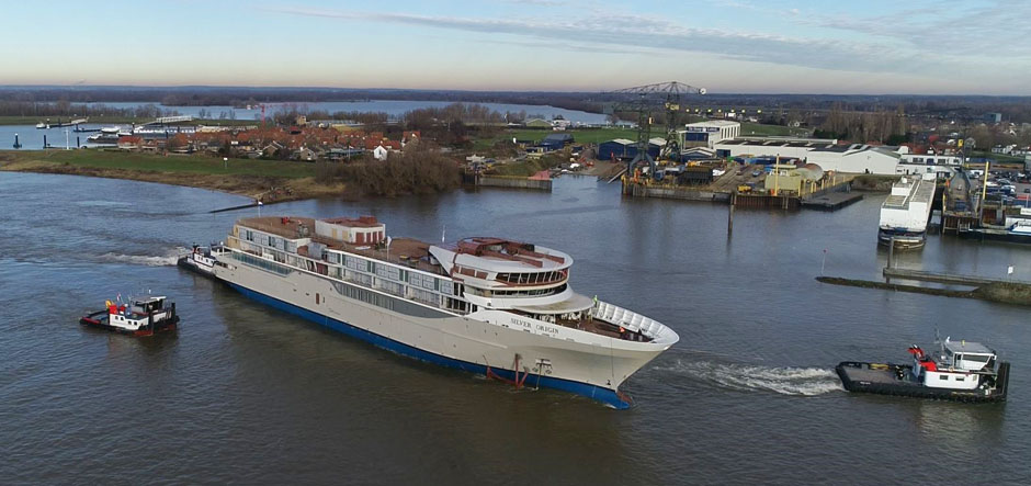 Silversea’s first destination-specific ship, Silver Origin, is now undergoing interior outfitting at De Hoop’s shipyard in Lobith, Netherlands after floating out of dry dock.