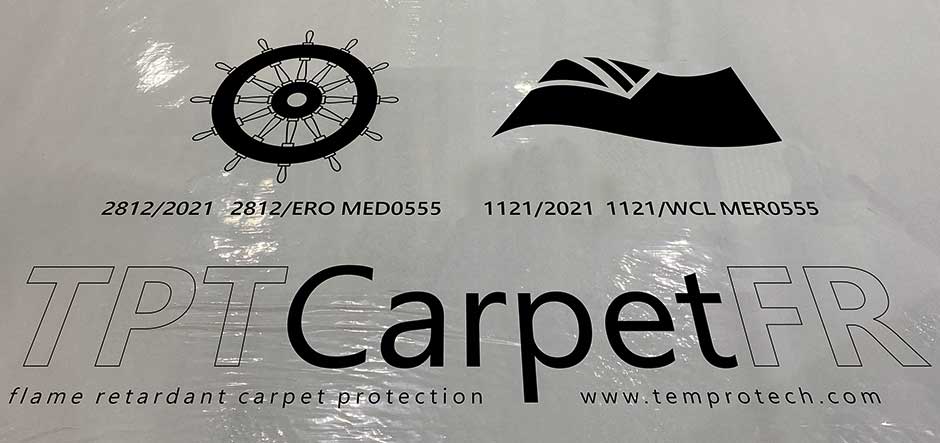 Used to protect carpets during newbuilds, refits and refurbishments, the adhesive-backed film, which carries the International Maritime Organization Wheelmark safety certification, has now been updated to include details of the new Black Ensign marine certification, confirming its approval for use on vessels in UK waters and on UK-registered vessels.