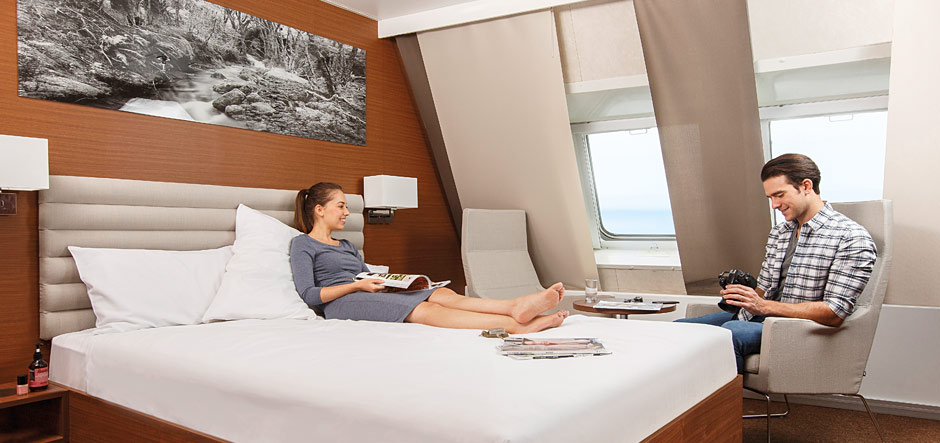 “In August last year the vessels benefited from a AUD$31.5 million refurbishment including a new self-service restaurant area, two new cinemas, an upgraded lounge area and three new bars – all showcasing Tasmanian local produce. The accommodation lounge area has been fully refurbished with new recliners, more spacious seating layout and added comfort. The Deluxe Cabins have also been completely refurbished and new soft furnishings provided in the other cabins. The new internal décor, lighting and colour schemes are designed to all have a fresh, modern feel,” he says.