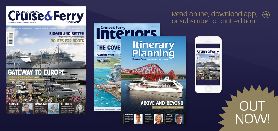The Autumn/Winter 2015 issue of International Cruise & Ferry Review and two supplements, Cruise & Ferry Interiors and the Itinerary Planning Special Report 2015 are out now, and available free of charge in digital format. Visit the magazine page to read all three online, or download a copy to your device.