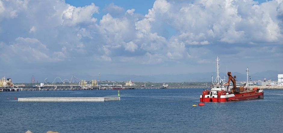 Eleven caissons are being produced on the Mar del Aneto floating dock, three of which have already been completed. Each of the foundations is 41 metres long, 16.75 metres wide and 21.3 metres high, and it is calculated that a full one will weigh around 33,441 tonnes. Construction of the caissons has surpassed the expected rate of one per week by approximately 25 per cent.