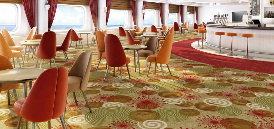 Flooring possibilities are almost limitless now that designers have access to a wide range of materials and techniques such as digital printing. For instance, passenger ship operators can achieve real design freedom – and a distinctive design signature for their brand – by creating bespoke patterns and digitally printing them on Forbo Flooring’s textile floor covering Flotex FR. Designers can build on this flooring to create the type of striking interiors that will keep guests coming back time and time again.