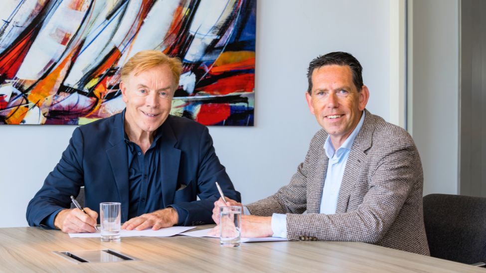 Executives from Transcend Cruises and Den Breejen Shipyard celebrate the agreement
