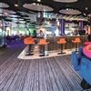 A key highlight of the revitalisation project was the Live Room entertainment venue. Previously split into two areas, the venue is now one open space with a bespoke acoustic ‘floating deck’ stage, a custom-built bar, a raised drinks area with a yellow grand piano, and new bulkheads and deck heads. The laminate pink and blue bulkheads incorporate ceiling discs and LED lighting, which has a customisable system for dimming and changeable colours to suit the requirements of the onboard entertainers.