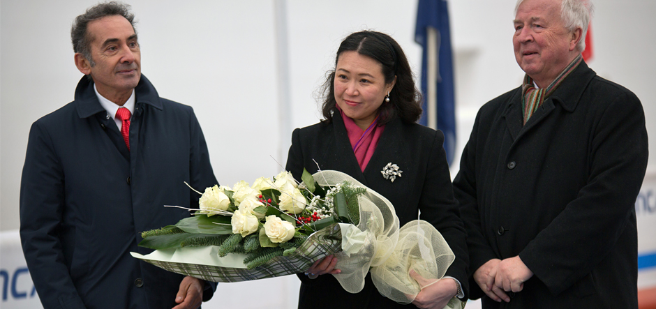 Yi Lou, vice president of China Merchant Bank Financial Leasing (CMBFL), served as Viking Sun’s madrina during the ceremony. First, she welded commemorative coins to the ship and then cut the cord to allow water to begin flowing into the ship’s building dock.