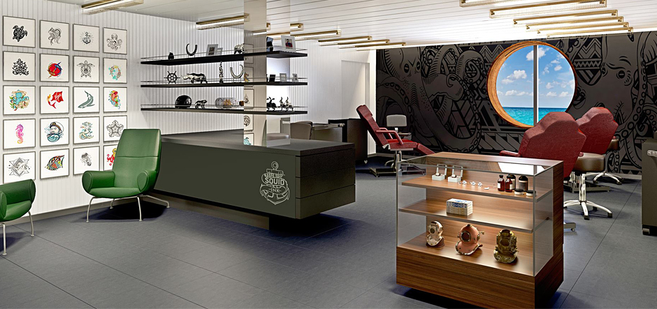Squid Ink will offer a range of exclusive voyage tattoo designs, as well as permanent make-up treatments and body piercings.