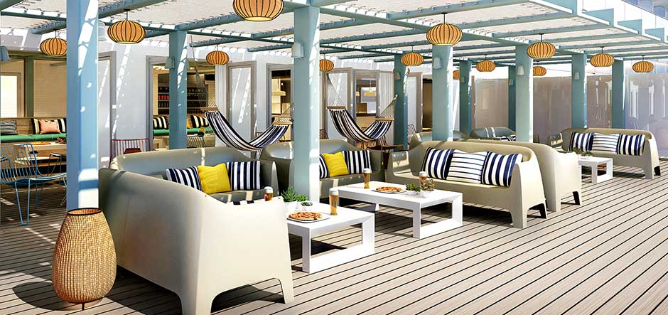 Moving away from cruise traditions, the company has opted not to have a buffet, a main dining room, assigned seating and dining times, enforced formal wear or surcharges for speciality restaurants. Instead, guests will be able to choose whether to eat at a table or the bar in more than 20 restaurants, casual eateries and lounge bars. These venues will offer made-to-order dishes and remain open until late at night or the early hours of the morning.