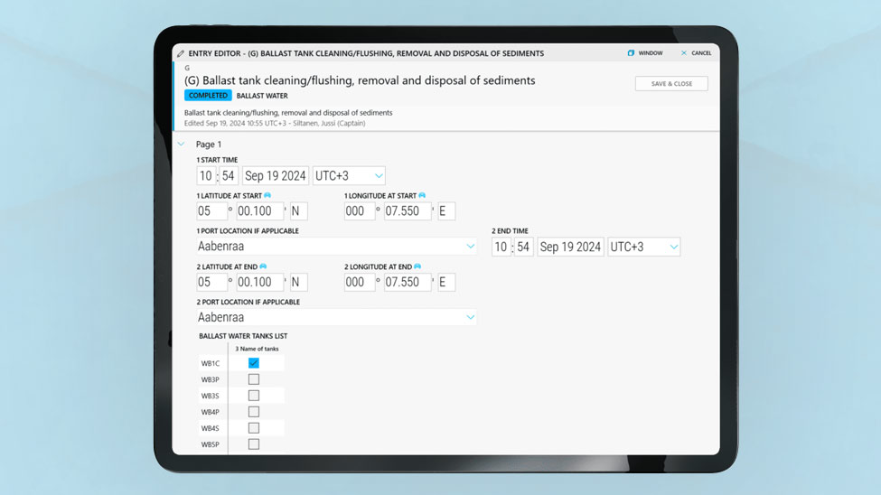 The NAPA Logbook acts as a compliance engine. The solution is pre-loaded with up-to-date templates, ensuring all required data is recorded efficiently. It is also connected to onboard systems, so it automatically fills fields, flags irregularities and validates entries in real time. In addition, it helps crews to log maintenance actions and contingency plans with time-stamped entries and digital signatures, supporting full traceability and audit readiness.