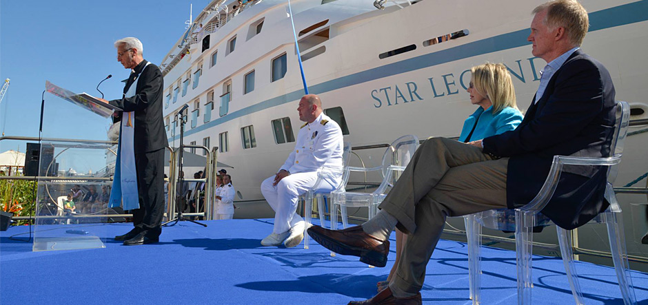 Named Star Legend in front of 250 guests during a pier-side champagne ceremony, the ship joins her sister ships Star Pride and Star Breeze, which were purchased from Seabourn Cruises as part of a deal signed in February 2013.