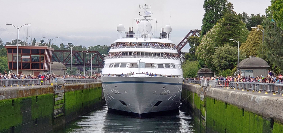 Star Legend becomes largest-every cruise ship to transit Ballard Locks and sail onto Lake Union