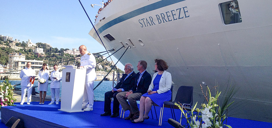 Star Breeze was christened after undergoing a US$8.5 million, three-week renovation in Genoa, Italy.